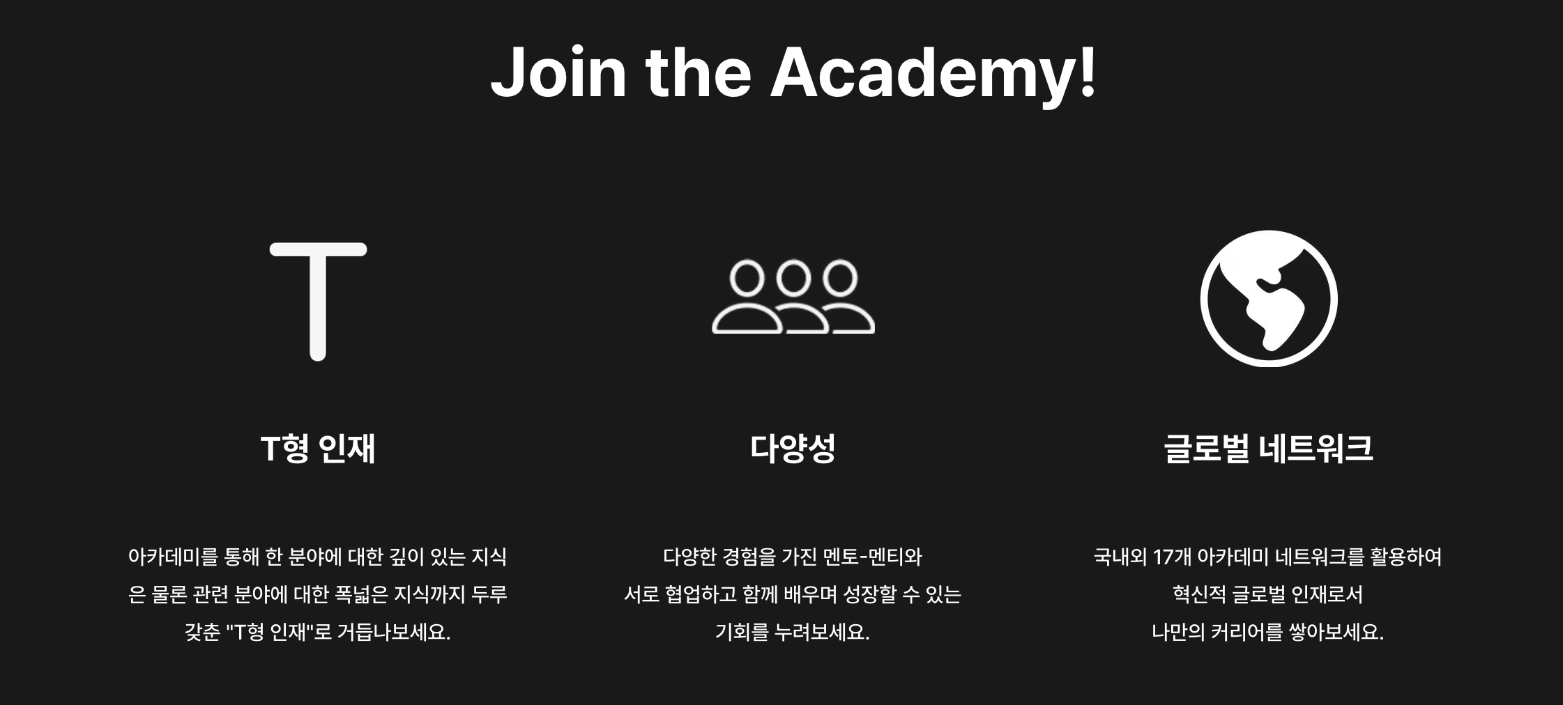 더 자세한 내용들이 궁금하면, 아카데미 공식 홈페이지 / 인스타그램 / 유튜브 / 블로그 등 다양한 채널로 홍보를 하고 있으니 찾아보시는 것이 좋을 것 같습니다 ^__^