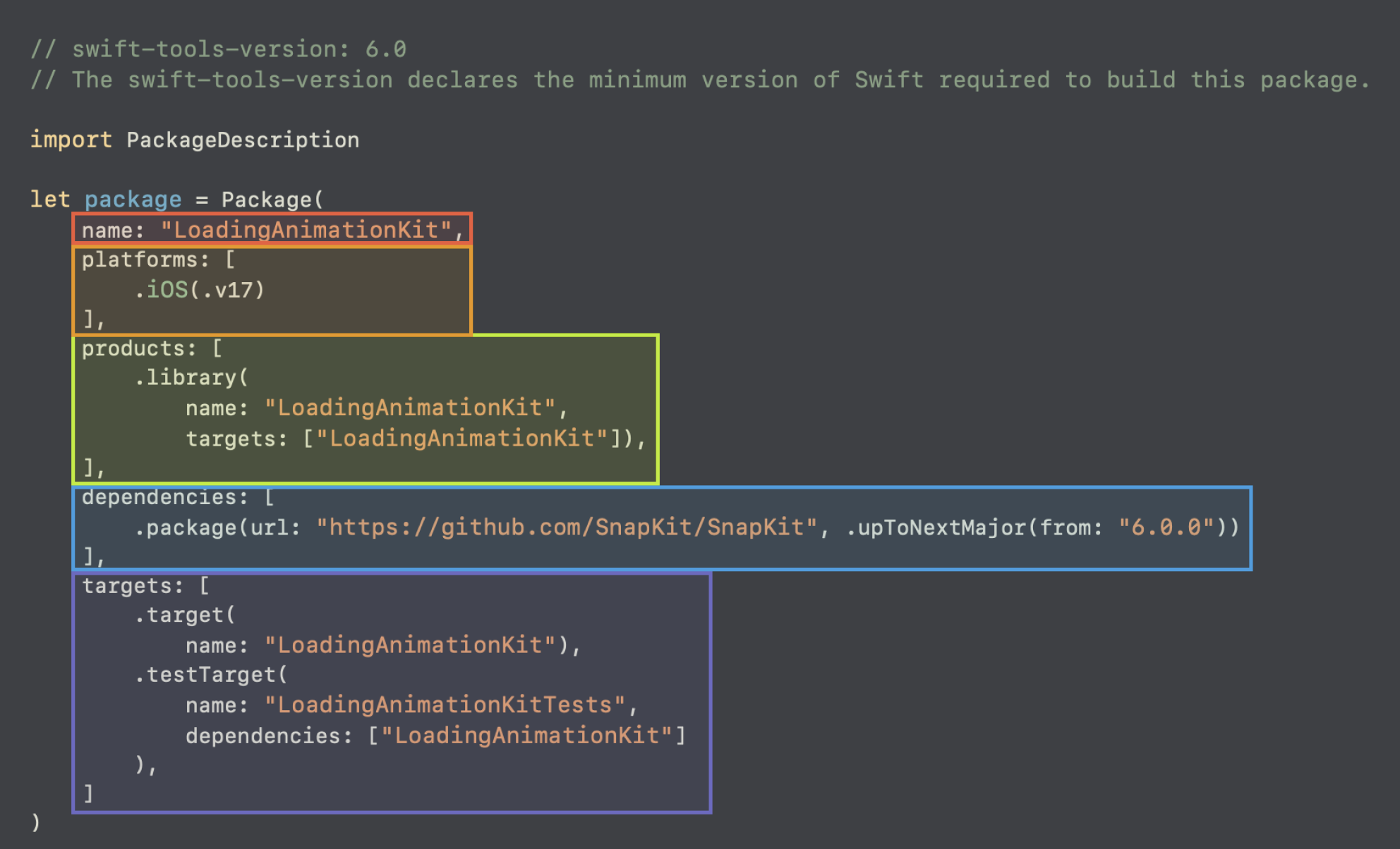 그럼 위에서 간단하게 넘어갔던 Package.swift 파일에 대해서 조금 더 자세하게 살펴볼게요.