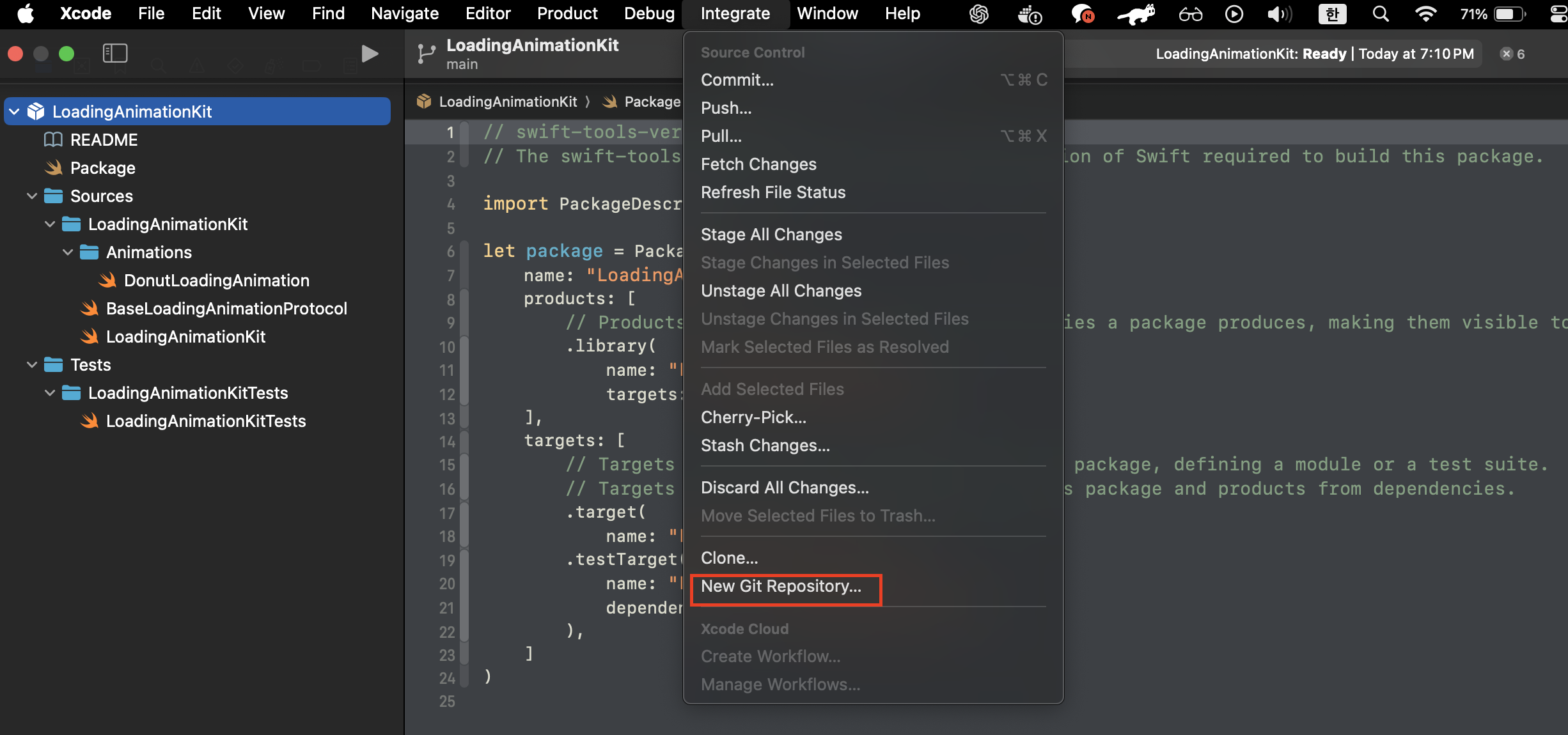 Xcode 상단 Intergrate (구버전은 Source Control) - New Git Repository로 접근하면, 쉽게 만들 수 있어요!