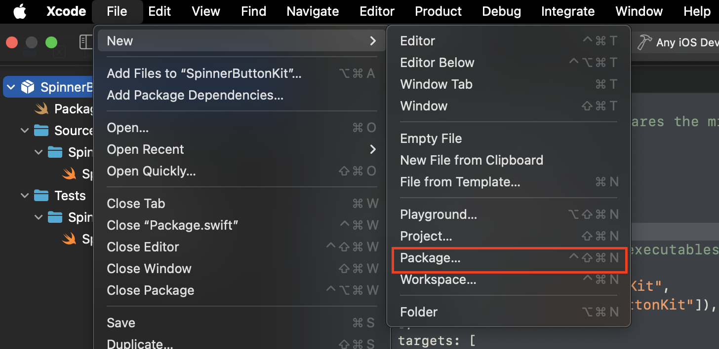 상단바에 있는 File-Package를 누르면, 새로운 Swift Package 파일을 생성할 수 있어요.