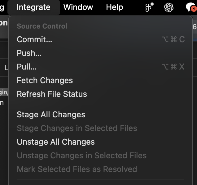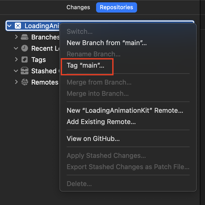 우리가 평소 사용하는 Commit, Push, Pull, Fetch, Stage, Tag, New Branch 등의 Git 기능도 위에서 설명한 것처럼 Xcode에서 기본적으로 활용할 수 있습니다.