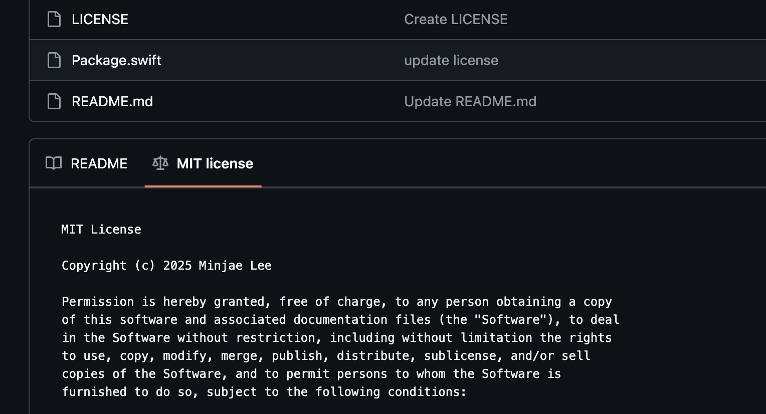 Swift Package를 릴리즈하면서 수업시간에 배운 오픈소스 라이선스를 써먹게 되는 날이 찾아왔습니다. (feat. 오픈소스SW프로그래밍)