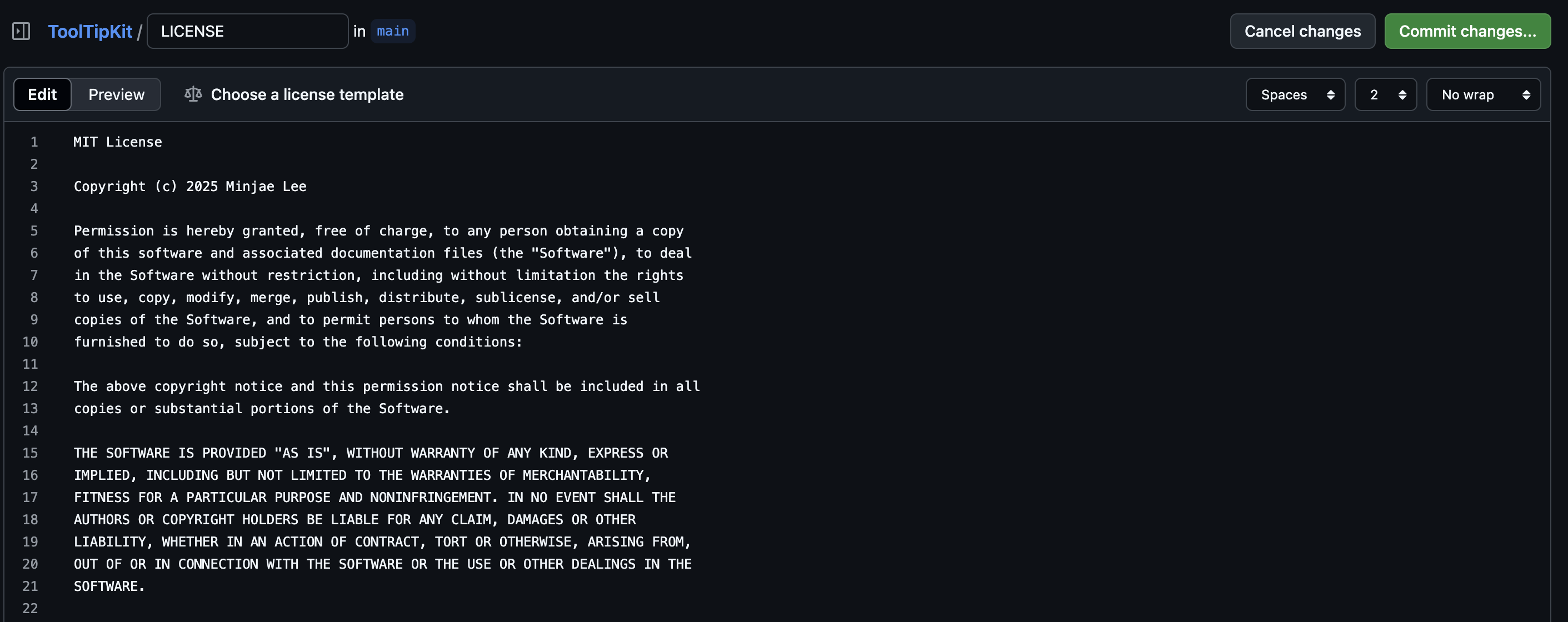 어떤 특정 오픈소스로부터 재배포를 진행한 것도 아니었기 때문에 - 가장 광범위하고 쉽게 적용할 수 있는 MIT License를 적용하게 된 것입니다.