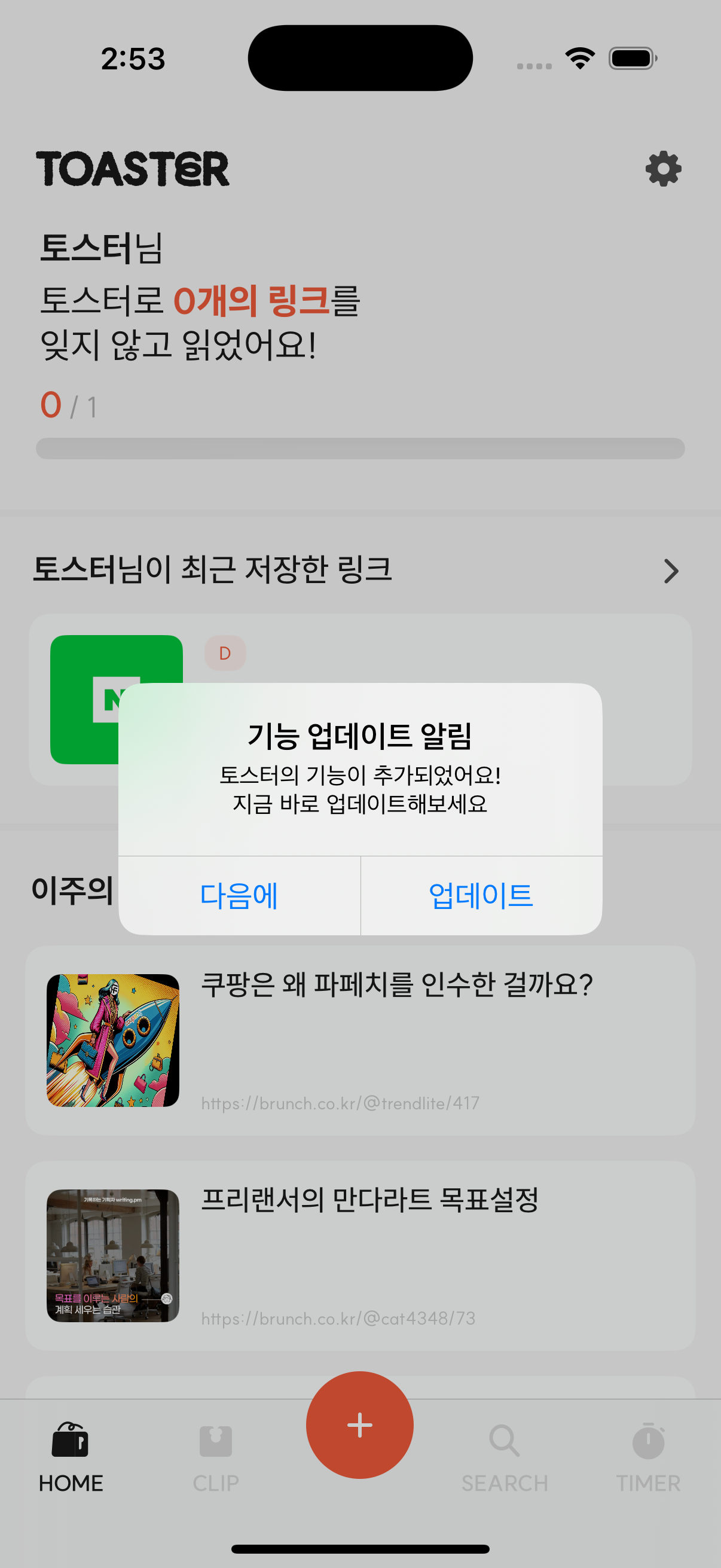 return "토스터의 기능이 추가되었어요!\n지금 바로 업데이트해보세요"