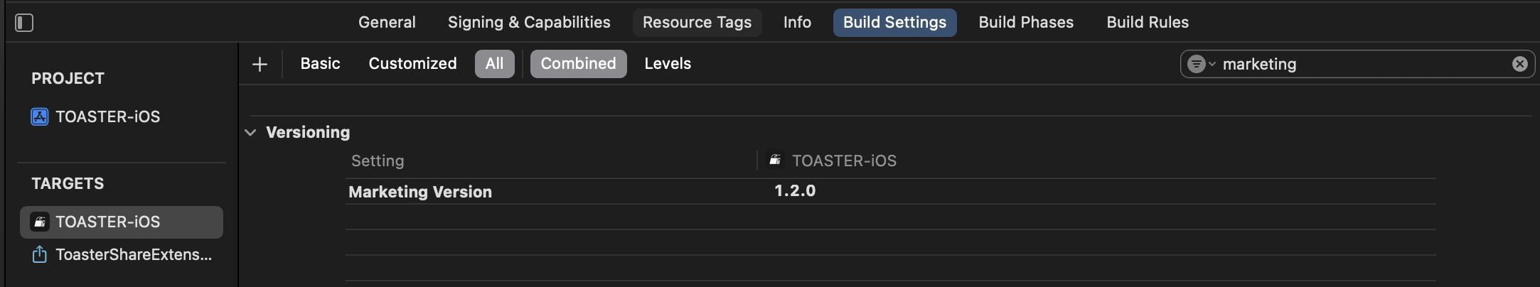 이 String 값과 연결된 MARKERING_VERSION 값은,