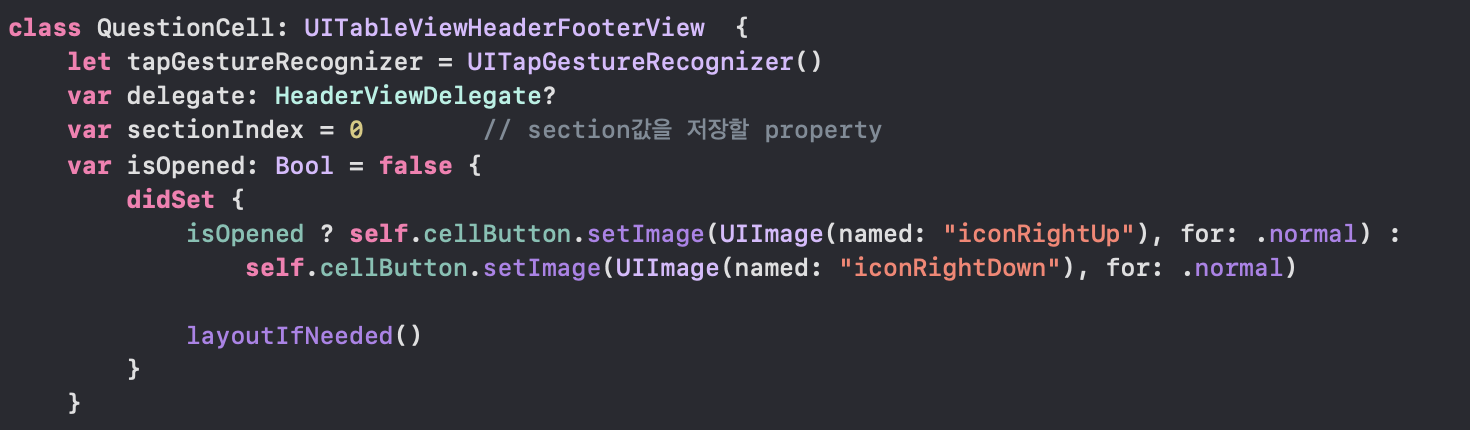 Section header를 구현한 아래 QuestionCell 부분을 더 자세하게 살펴보자.
