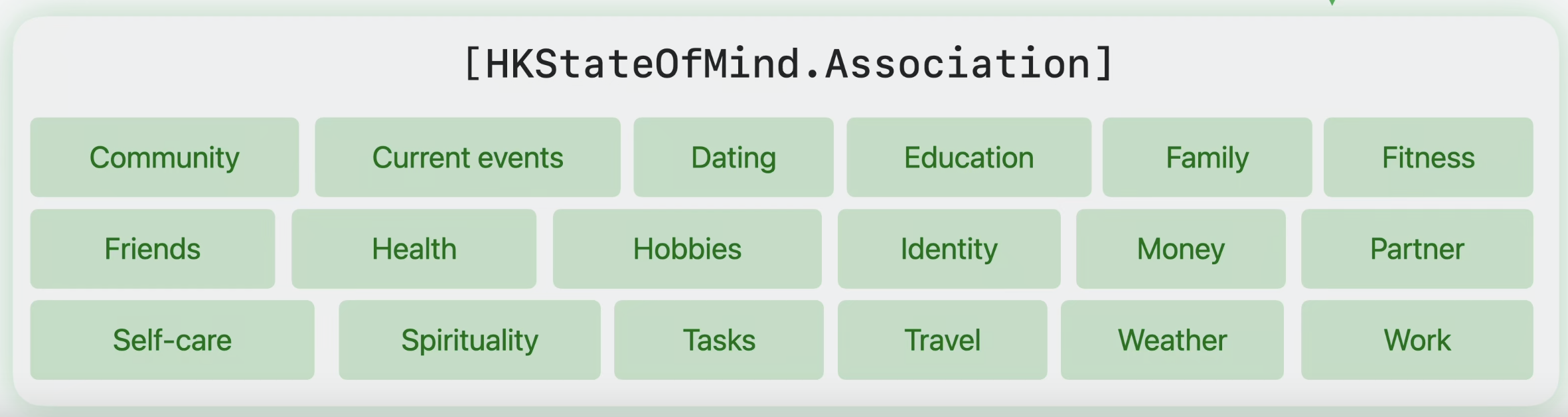 let associations: [HKStateOfMind.Association] = [.work, .friends]