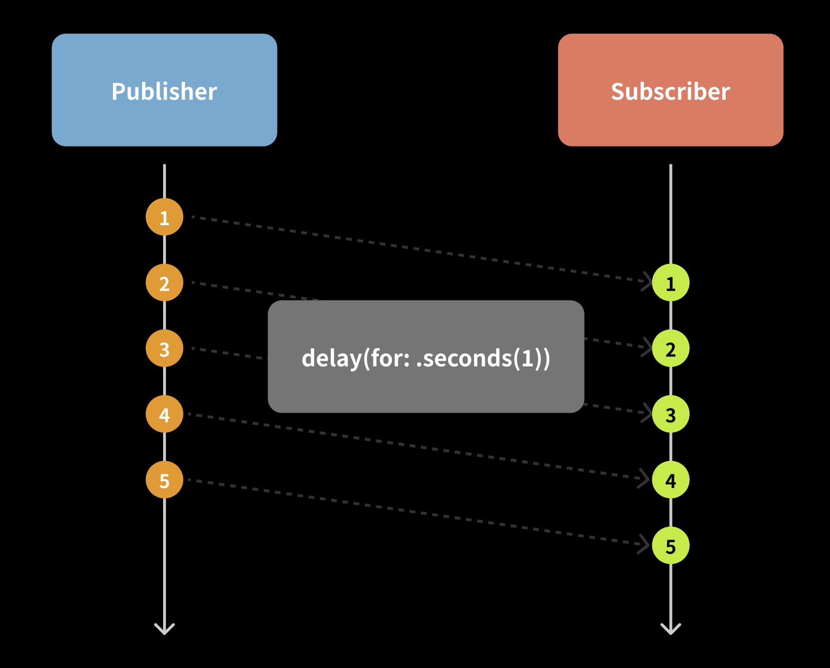 ✔️ delay : Upstream Publisher가 값을 방출하면, 잠시 보류했다가 일정 시간 이후에 값을 Publish함.