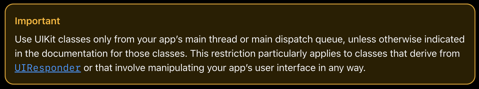 UIKit 공식문서를 들어가봐도 Important 칸에 별도로 강조하면서 설명하고 있습니다.