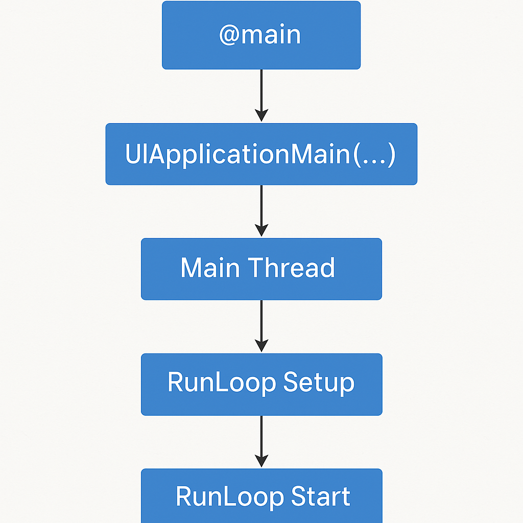 iOS 앱은 실행 시 (@main) 기본적으로 하나의 메인 스레드를 생성하고, 이 메인 스레드가 앱의 주요 작업을 처리하는 Main Run Loop라는 것을 실행하게 되는데요.