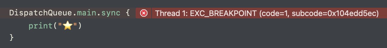 메인 스레드에서 DispatchQueue.main.sync를 호출할 때 아래와 같은 데드락 (Deadlock, 무한 대기 상태) 에러가 발생합니다.