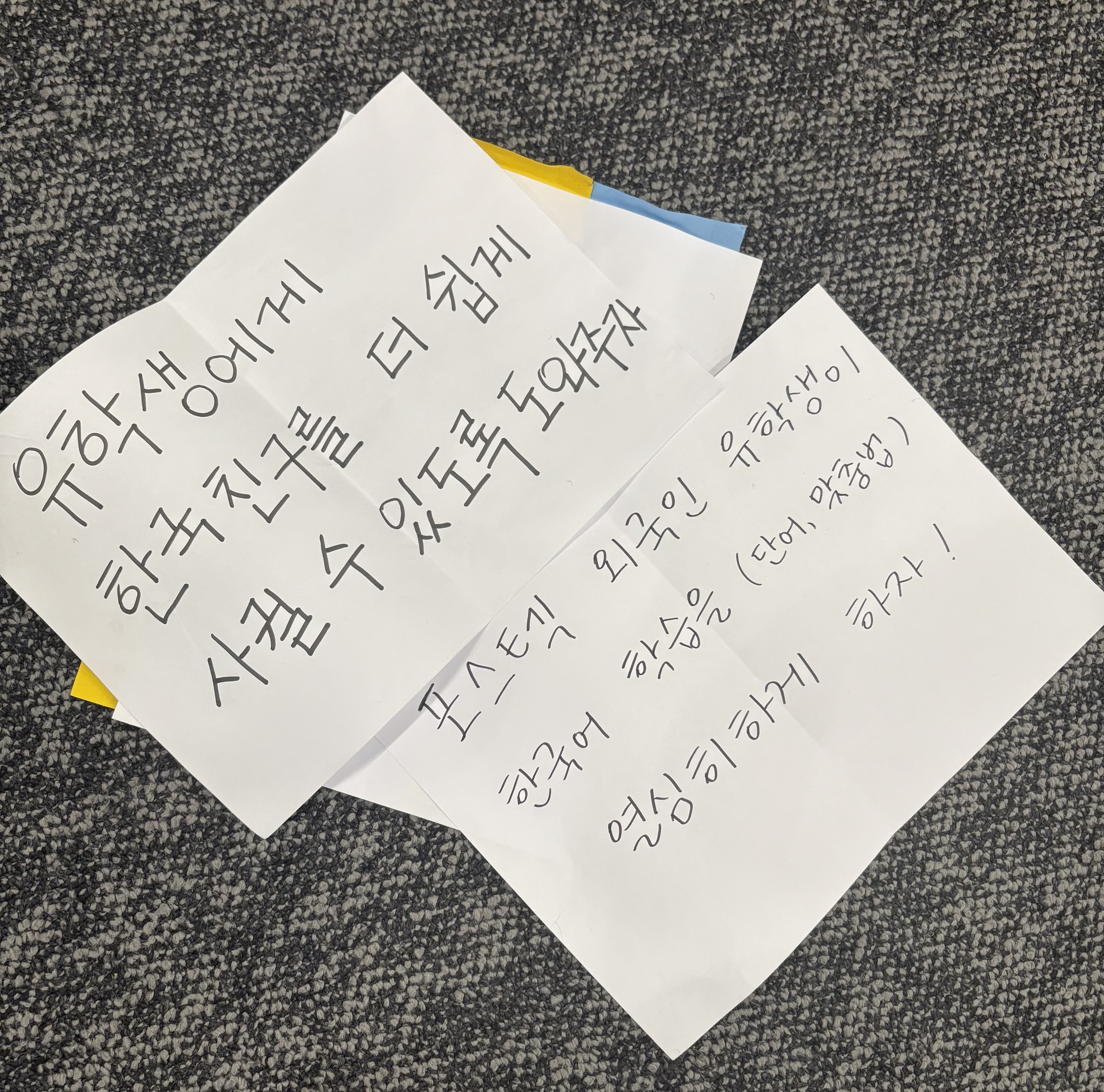 파고 들어가보면 세부적으로는 <외국인 유학생> <한국어 학습> <한국 친구 사귀기>라는 여전히 큰 카테고리 아래, 생각하는 프로덕트는 제각각이었고,