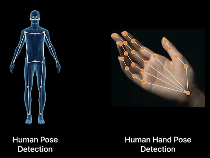 - WWDC24부터는 DetectHumanBodyPoseRequest 하나만으로 신체 주요 관절 포인트와 함께 다음 항목인 손가락 관절의 위치 (HumanHandPoseRequest)를 감지할 수 있게 되었습니다.