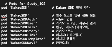 KakaoSDKCommon.initSDK(appKey: "네이티브 앱 키 쓰는곳")