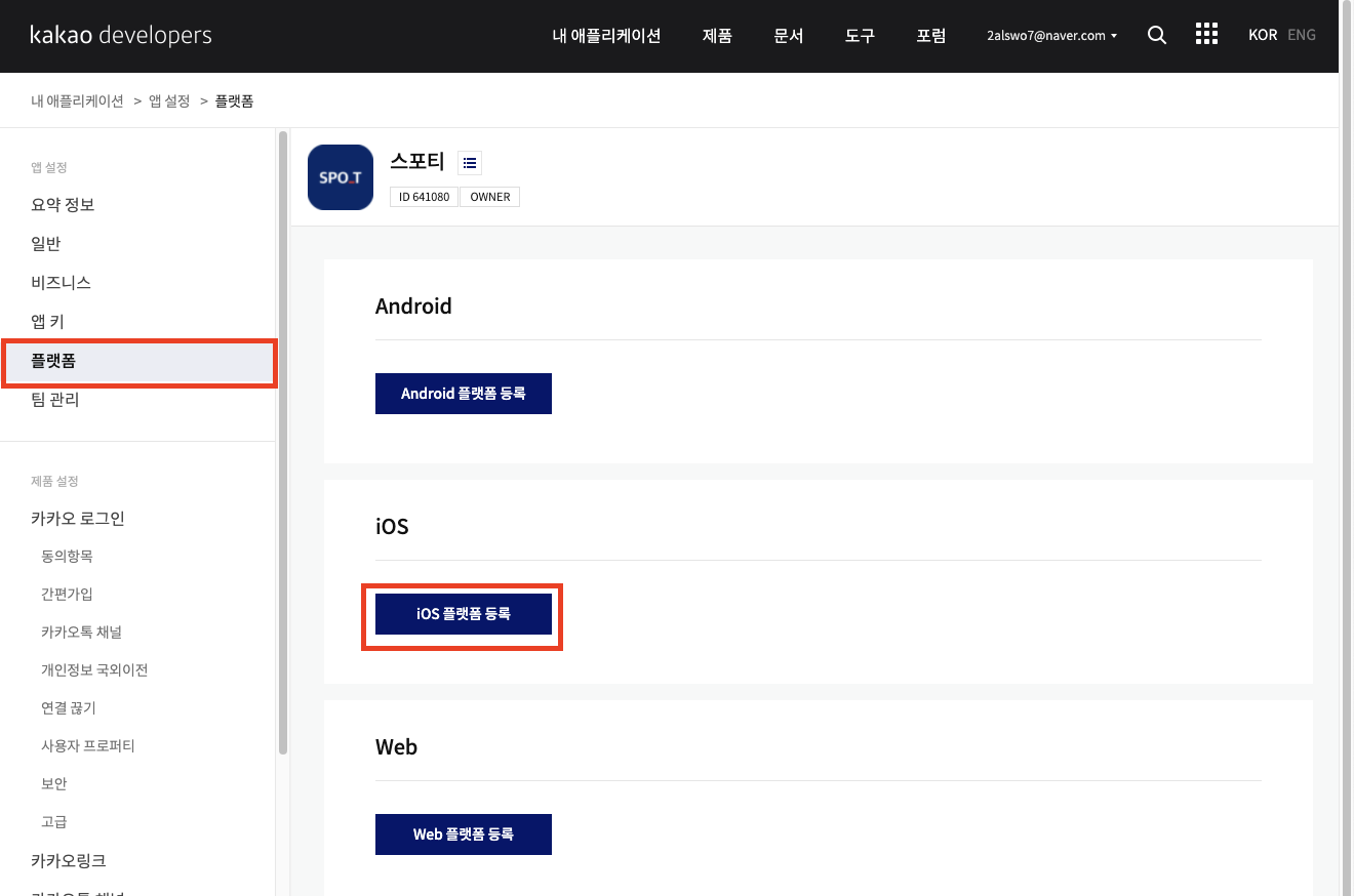 카카오 API와 비즈니스 솔루션 등 카카오 플랫폼을 이용하려면, 카카오 플랫폼을 등록해줘야 한다.