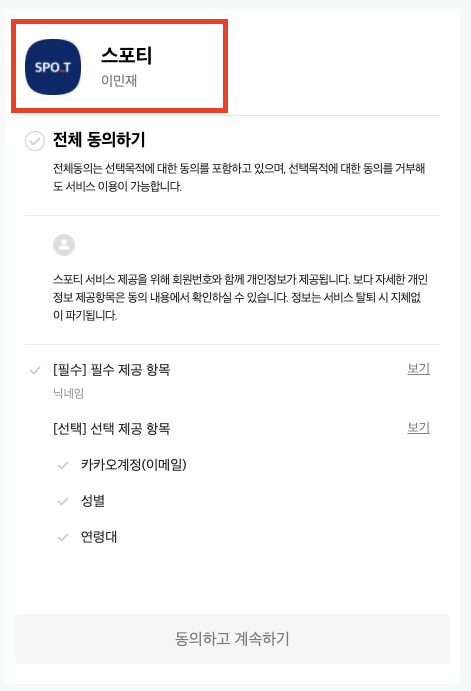 사용자에게 앱 이용 관련 동의를 요청하는 동의 화면을 출력하는 방식으로 진행되는 방식이다.