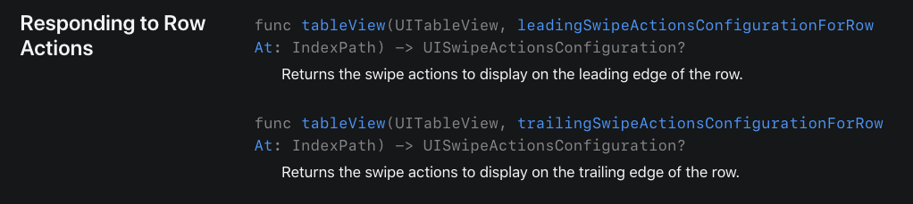 Apple 공식 문서를 살펴보면, Swipe Action은 2가지 형태로 구현해줄 수 있다고 한다.