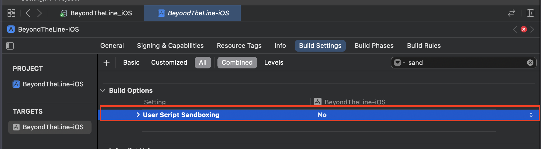 Optional 4. 만약 이대로 빌드를 했는데, error: Sandbox: bash(82460) deny(1) file-read-data가 발생했다면?