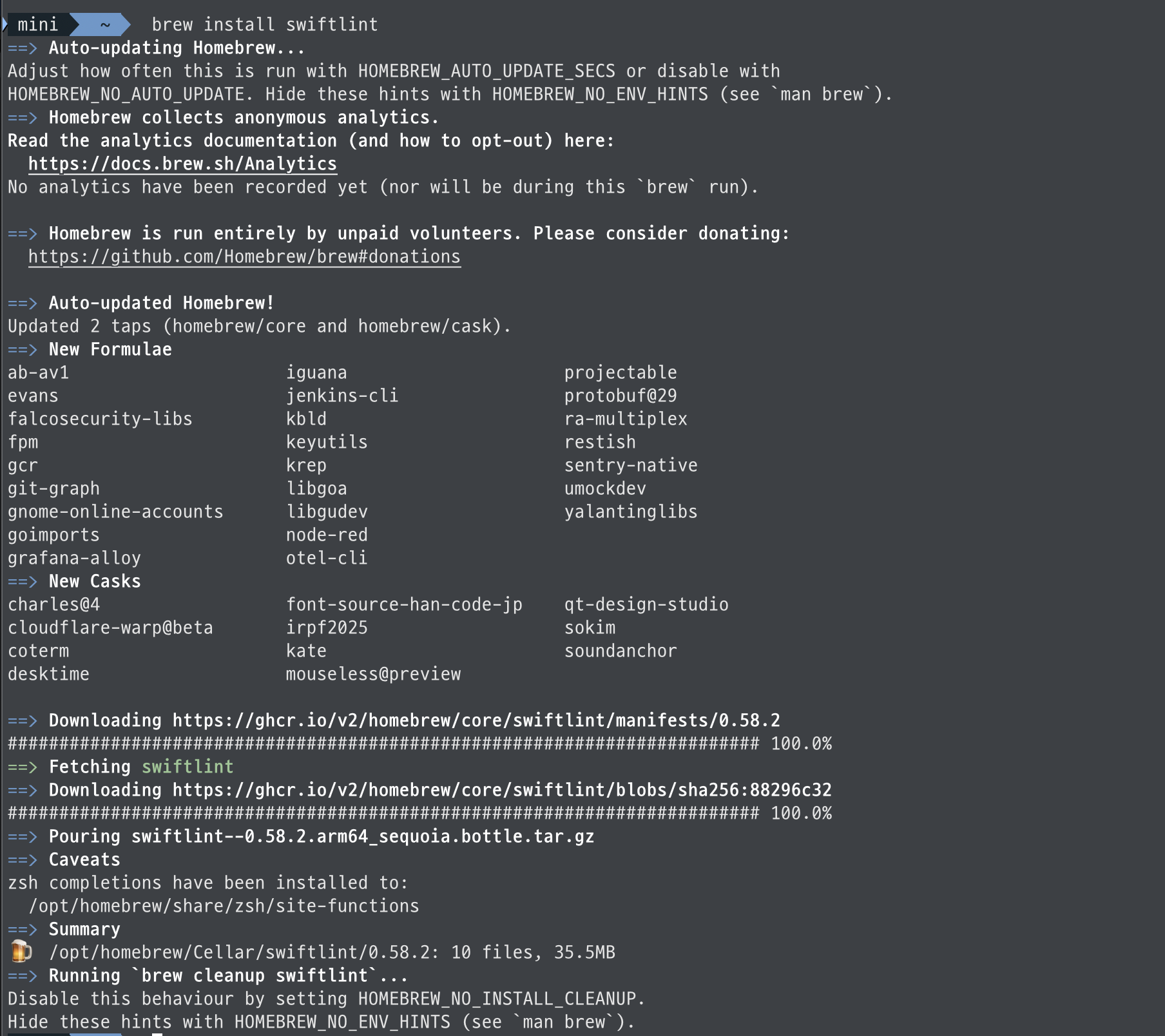 1. 터미널에 brew install swiftlint를 입력해서 SwiftLint를 설치해보기