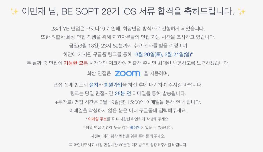 듣은 바로는 파트장과의 면접에서는 개발 지식과 관련된 질문도 있다 해서.. 나는 처음 자기소개를 할 때 iOS에 대한 개발 지식이 없다고 대놓고(?) 말했었다.