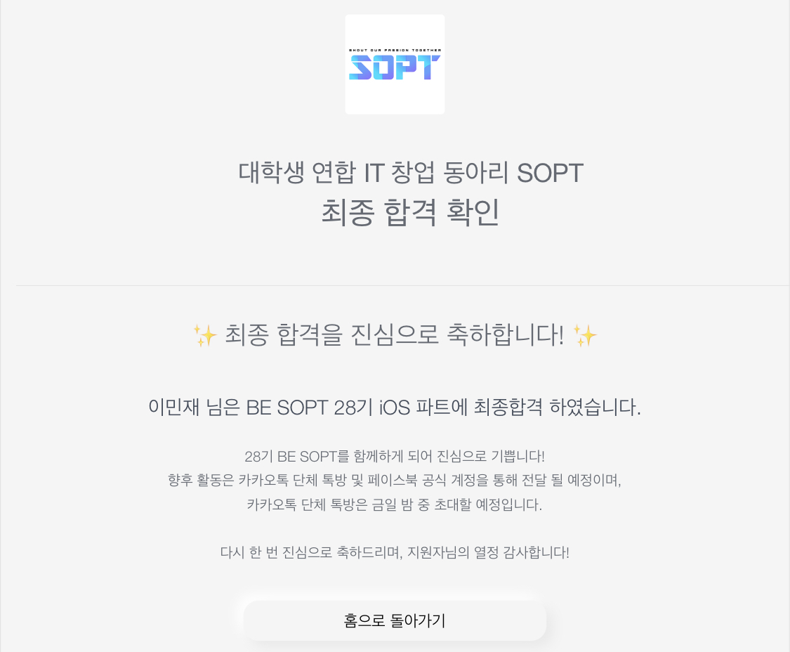 합격자 발표가 나왔다는 소식을 듣고 부랴부랴 솝트 공식 홈페이지에서 내 정보를 쳐보니...!