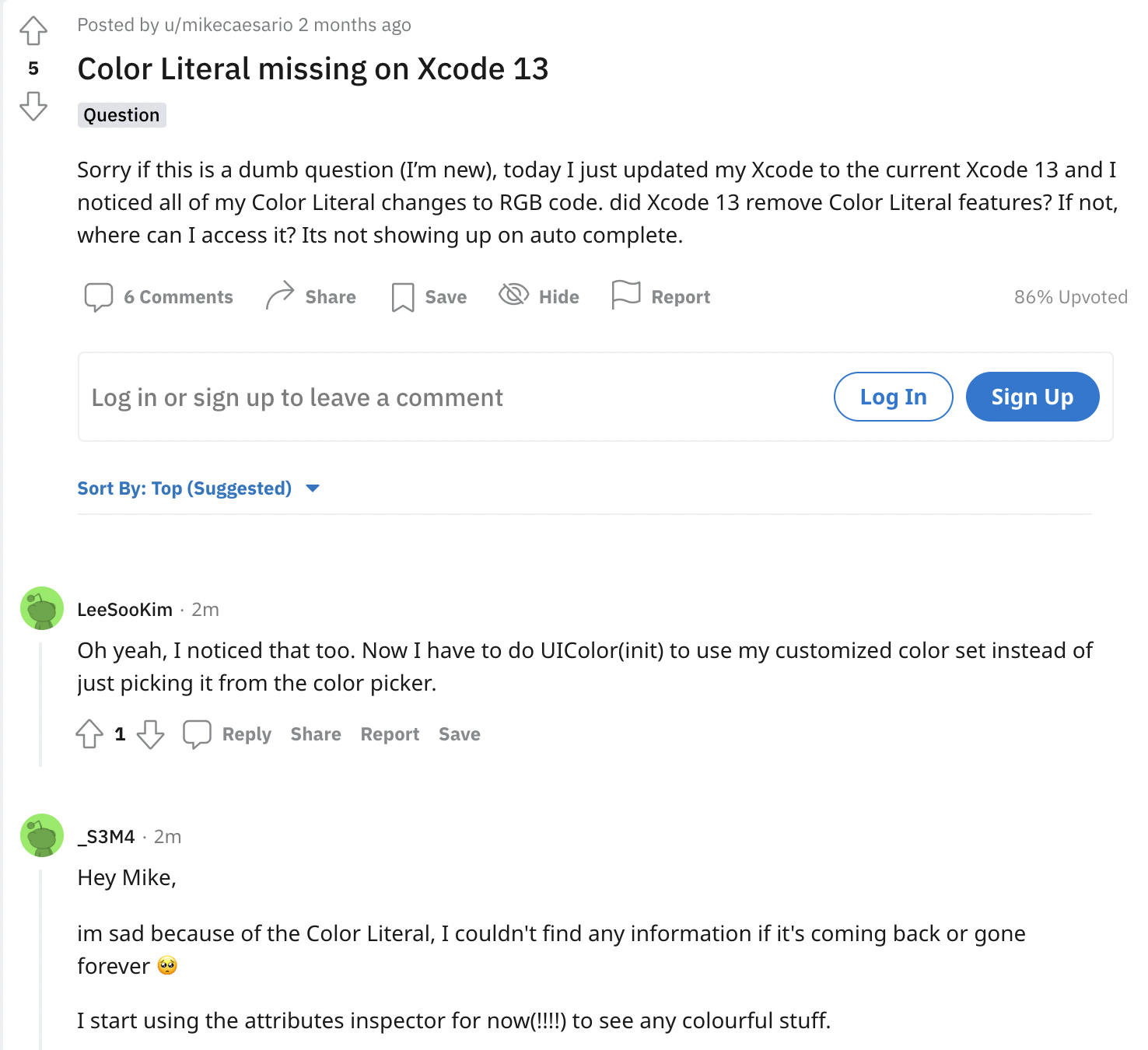 원래는 Xcode에서 아래 사진처럼 color를 치거나, image를 치면 Literal 자동완성을 지원해서 손쉽게 사용할 수 있었다.
